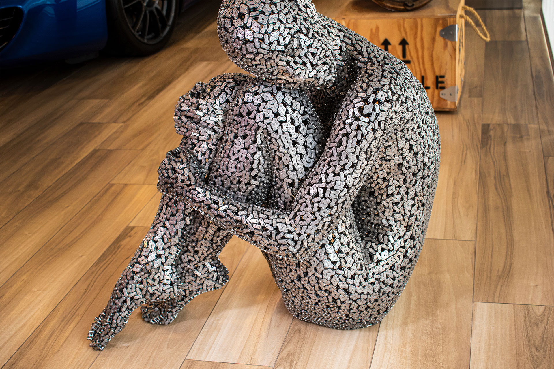 Limited Edition: 1/10. Female silhouette made of stainless steel chain. Dimensions: 81x47x78cm. Korea. 2019